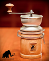 Korpus młynka w kolorze jasnym, wykonany z lakierowanego olchowego lub bukowego drewna pokrytego bejcą rustykalną. Żarna odlewane ze staliwa metodą traconego wosku (zobacz). Pozostałe elementy wykonane ze stopów metali, patynowane, pokryte powłoką galwaniczną. Ręcznie wyoblany kielich z blachy głębokotłocznej. Płynna regulacja mielenia (zobacz).